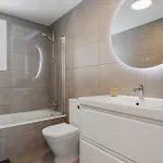 Há varanda, sofá e máquinas de café/chá, bem como cozinha equipada equipada com chaleira elétrica, refrigerador e forno. Algumas unidades têm terraço. O apartamento possui 2 quartos. Os hóspedes podem usar casa de banho separada, banheira e chuveiro neste apartamento.